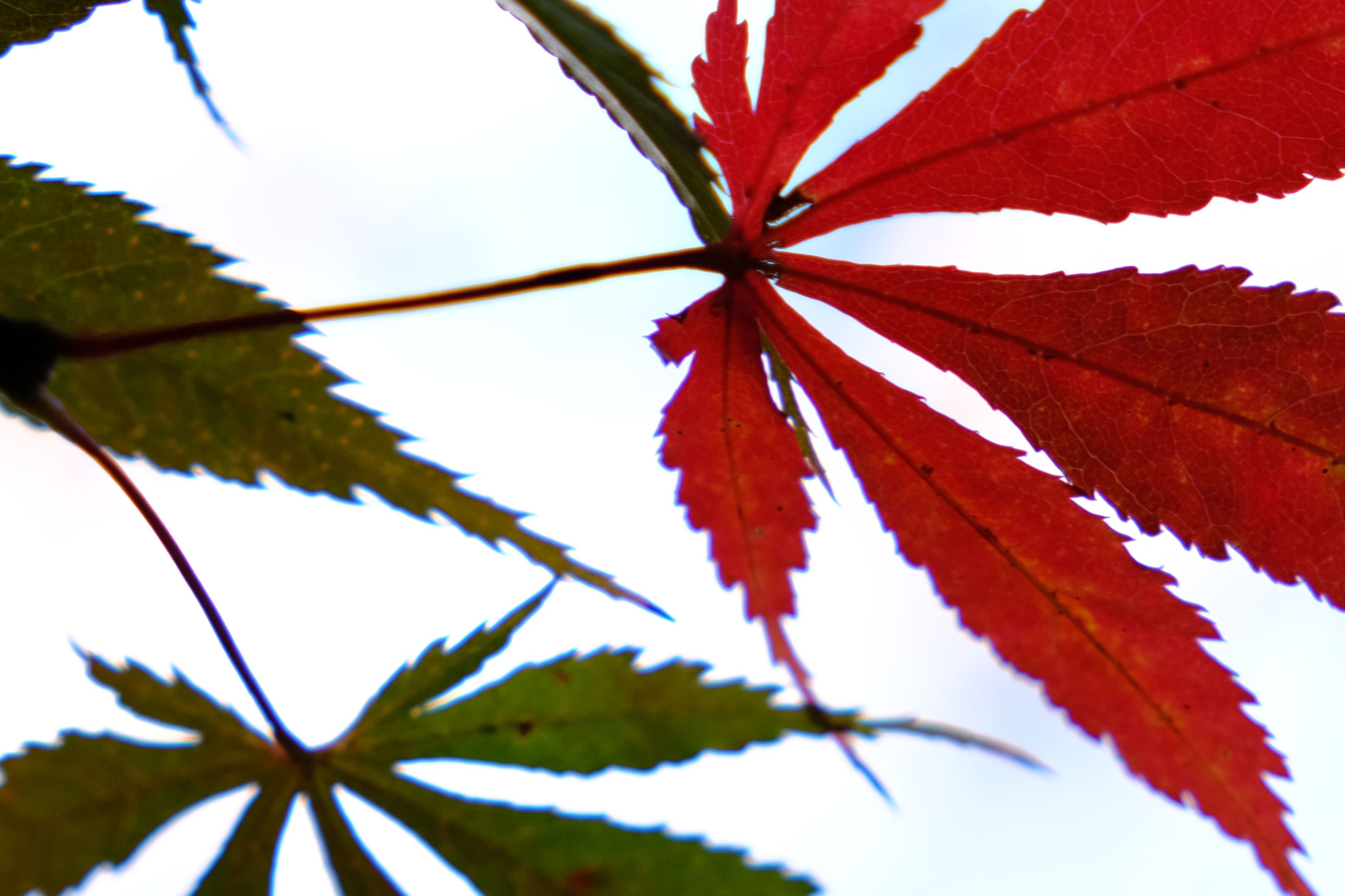 明暗差の大きいモミジの葉にパープルフリンジが発生しています。