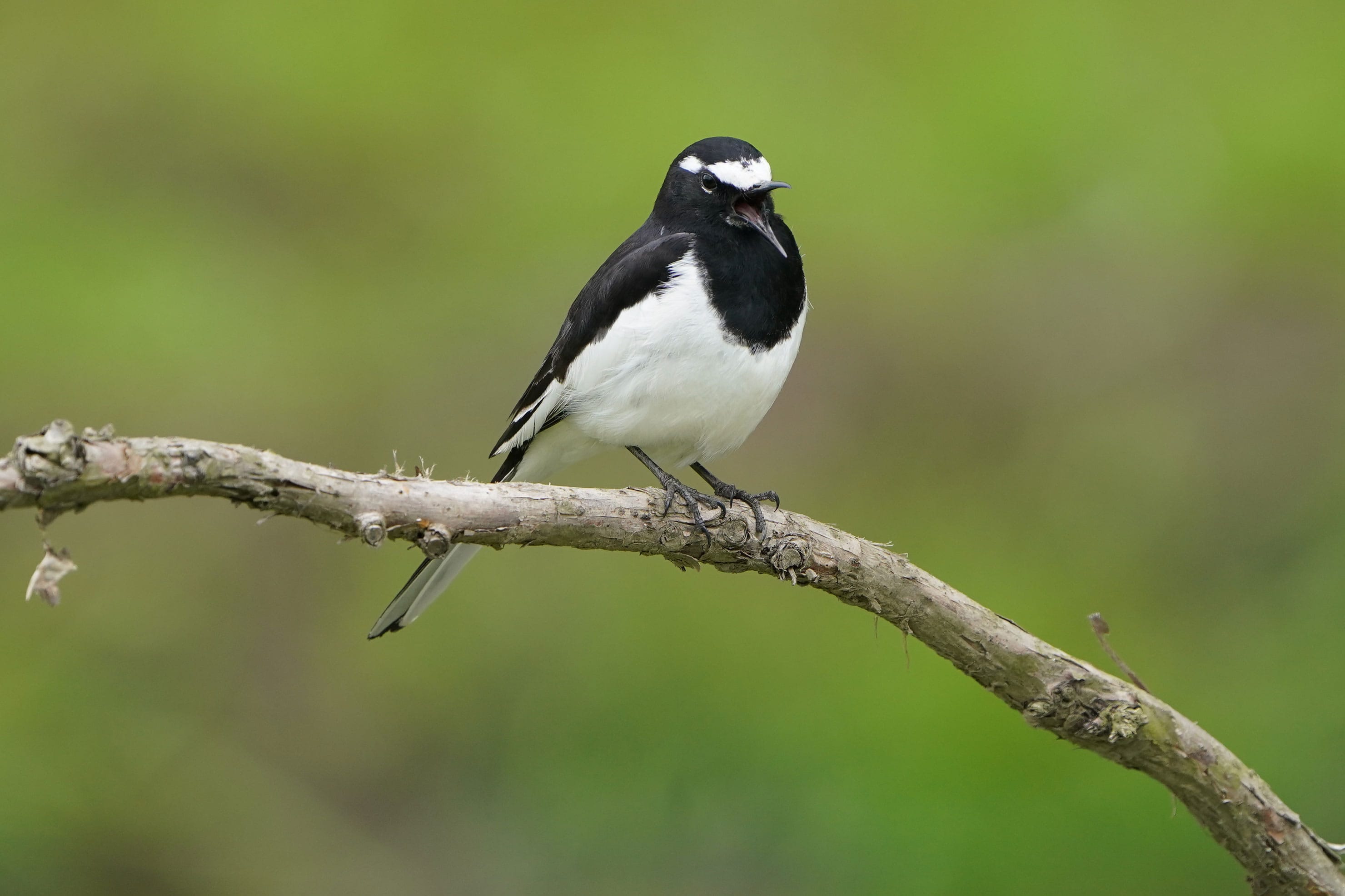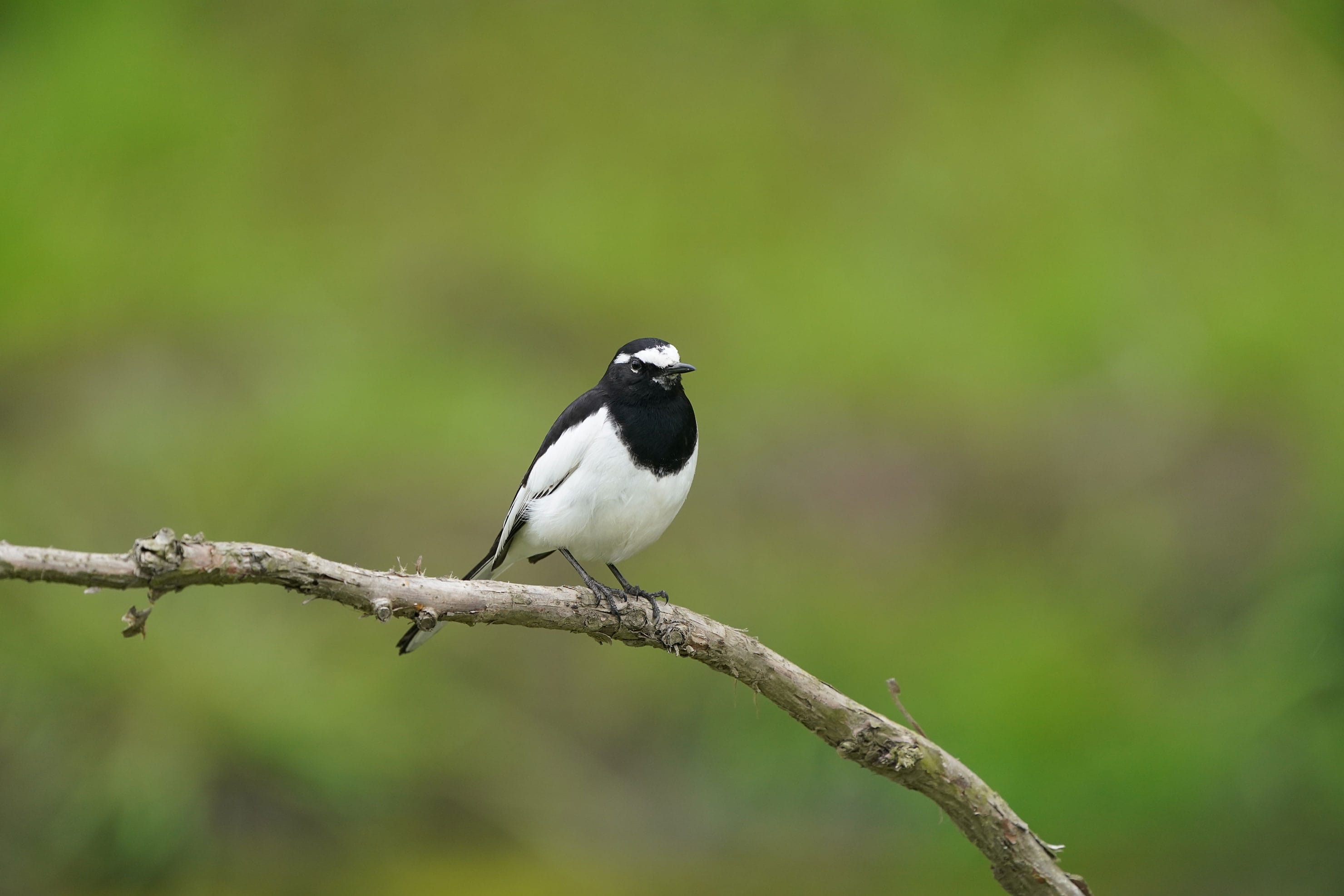 テレコンバーターを装着したことによりレンズの開放絞り値は一段暗いF9.0になります。枝にとまったセグロセキレイが飛び立つ様子はありませんでしたが、被写体ブレを防ぐ1/500秒が使えるよう感度をISO1000まで上げました。羽毛の質感はかろうじて再現できていますし、テレコンバーター装着による描写力への影響も軽微と思います。