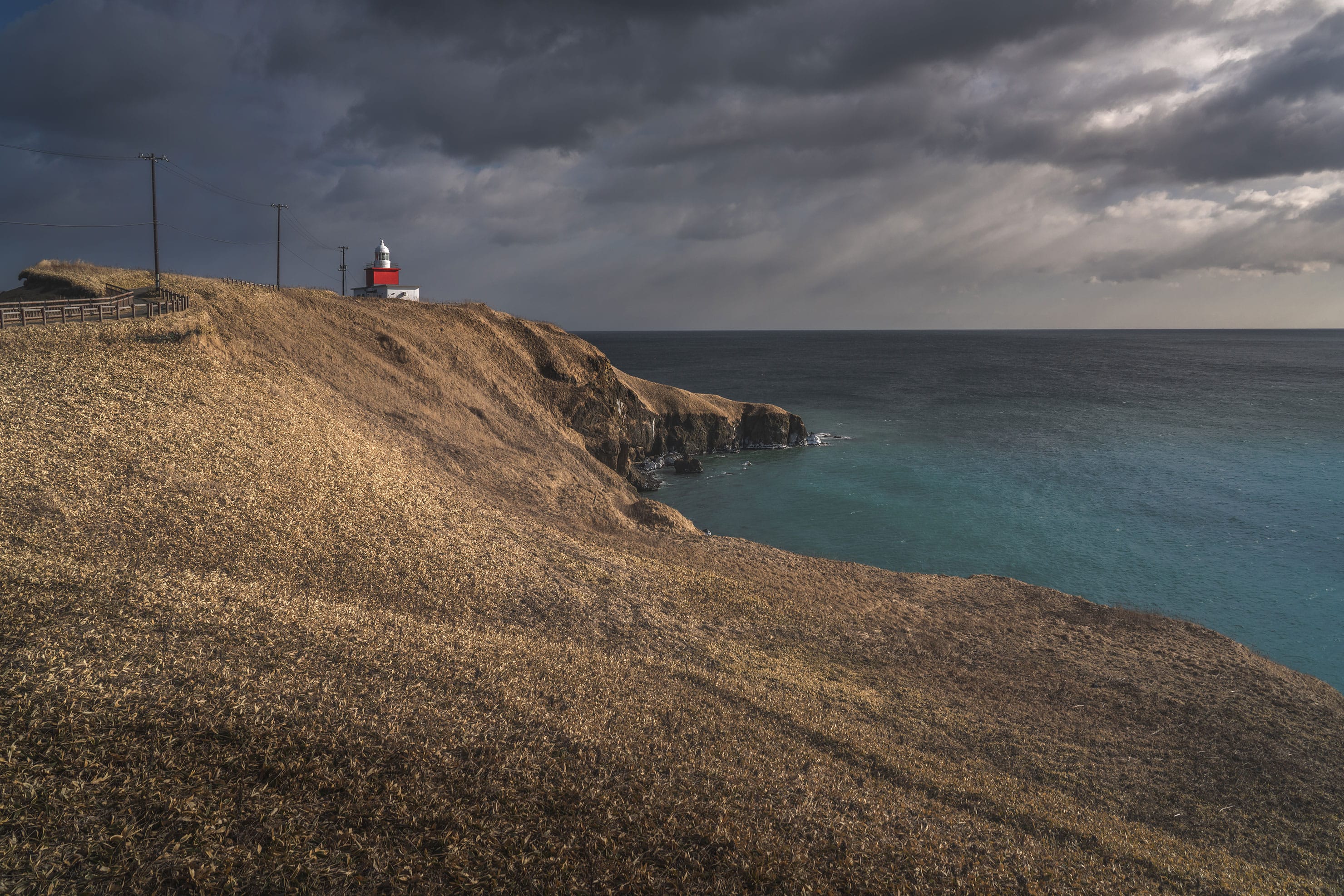 岬と灯台に陽が差したときにシャッターを押している。灯台の白壁が白く飛ばないことを願いながら、アンダーに撮影して、シャドウ部を持ち上げて目で見たときと同じくらいの輝度差を画面内に再現することを目標に現像している。低ISOで撮影したRAWデータには目を見張るほど豊かなデータが詰まっている。