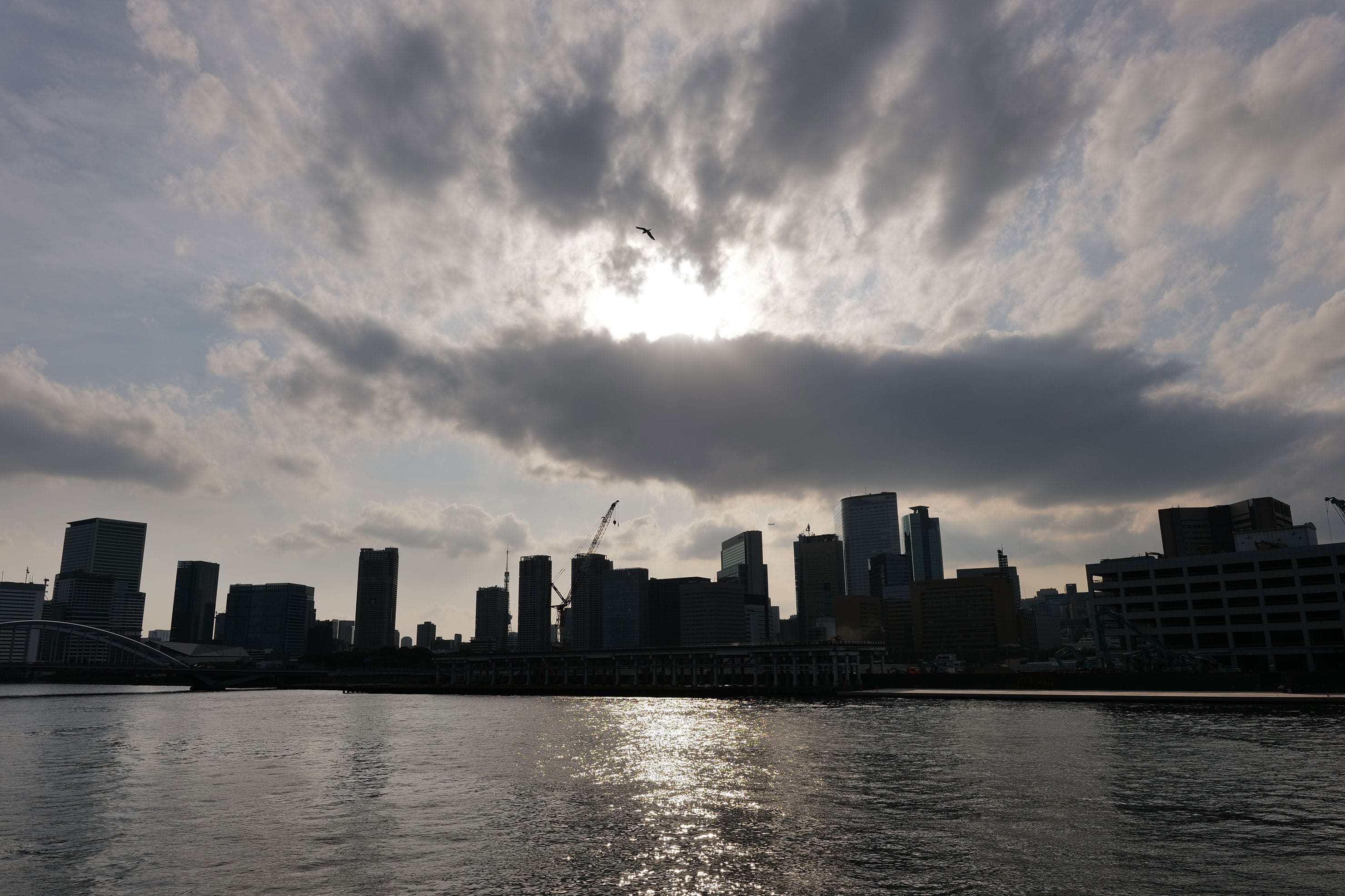 川を渡っているとき、逆光に輝く水面と雲に惹かれてライカSL2-Sを構えた。メカシャッターでもシャッター音は小さく、小気味よく撮影できる。