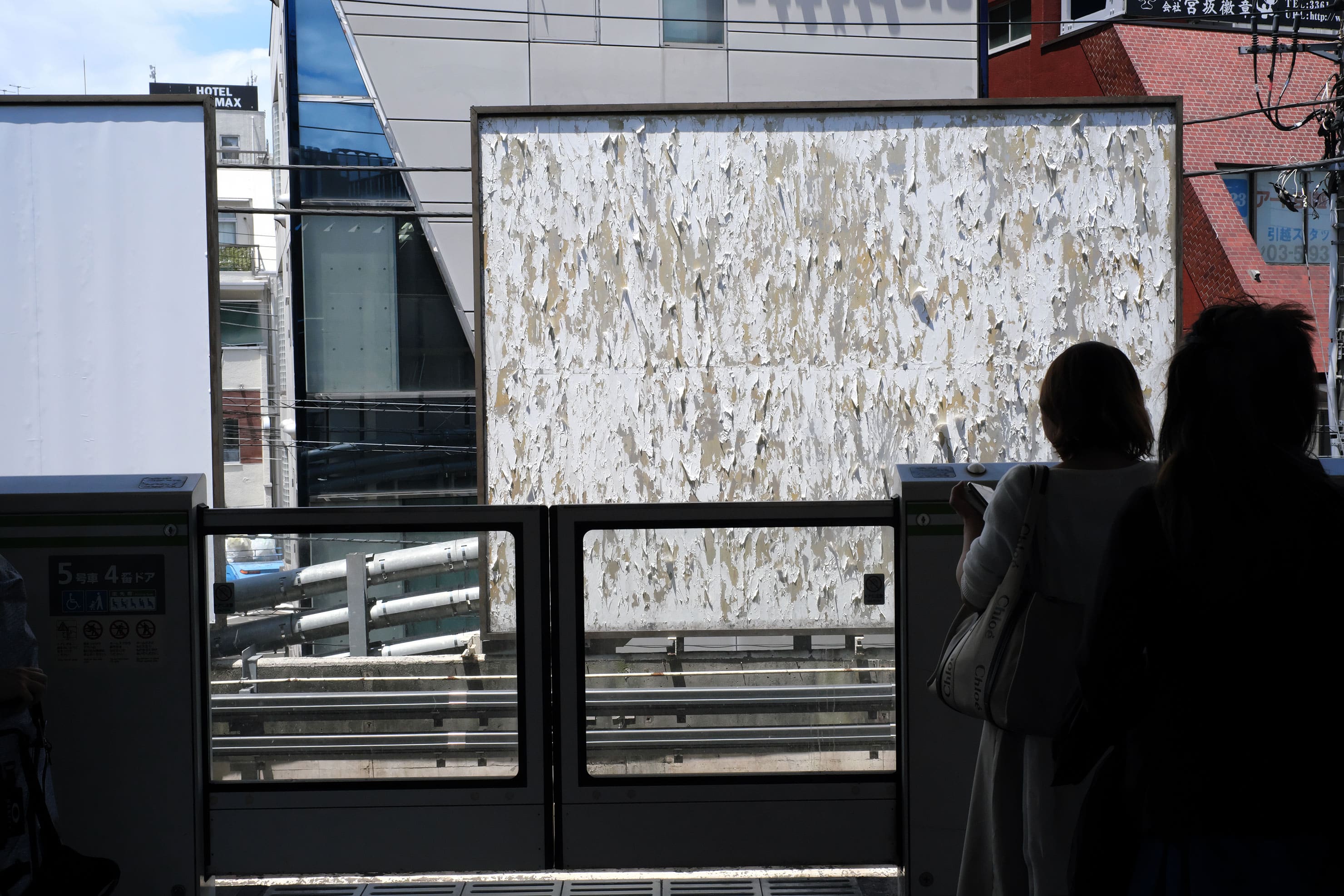 今回はカメラのサイドポケットに本レンズを装着したX-E4を忍ばせておき、本業撮影の移動中にもこれはというイメージを集めたが、この写真も駅のホームでの光景だ。
