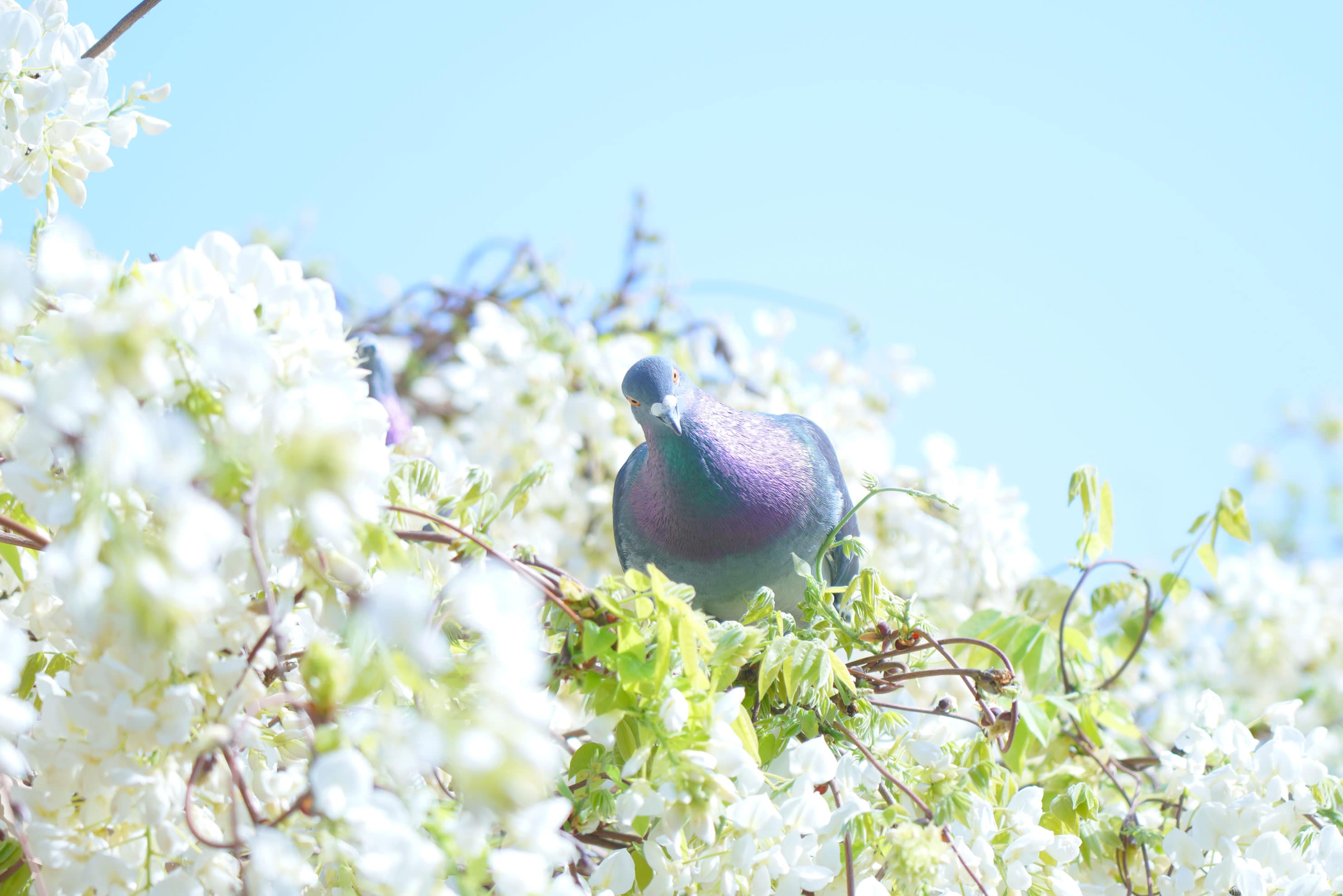 素早く動く鳩をロックオンAF(拡張フレキシブルスポット)で撮影。