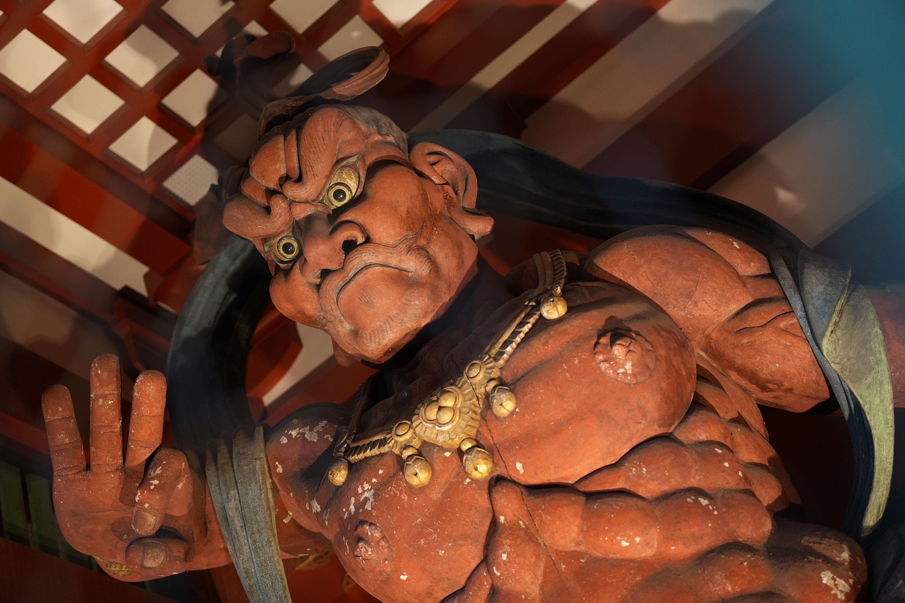 金網に覆われた仁王像だが、網の目からうまく撮れる角度を探してみた。