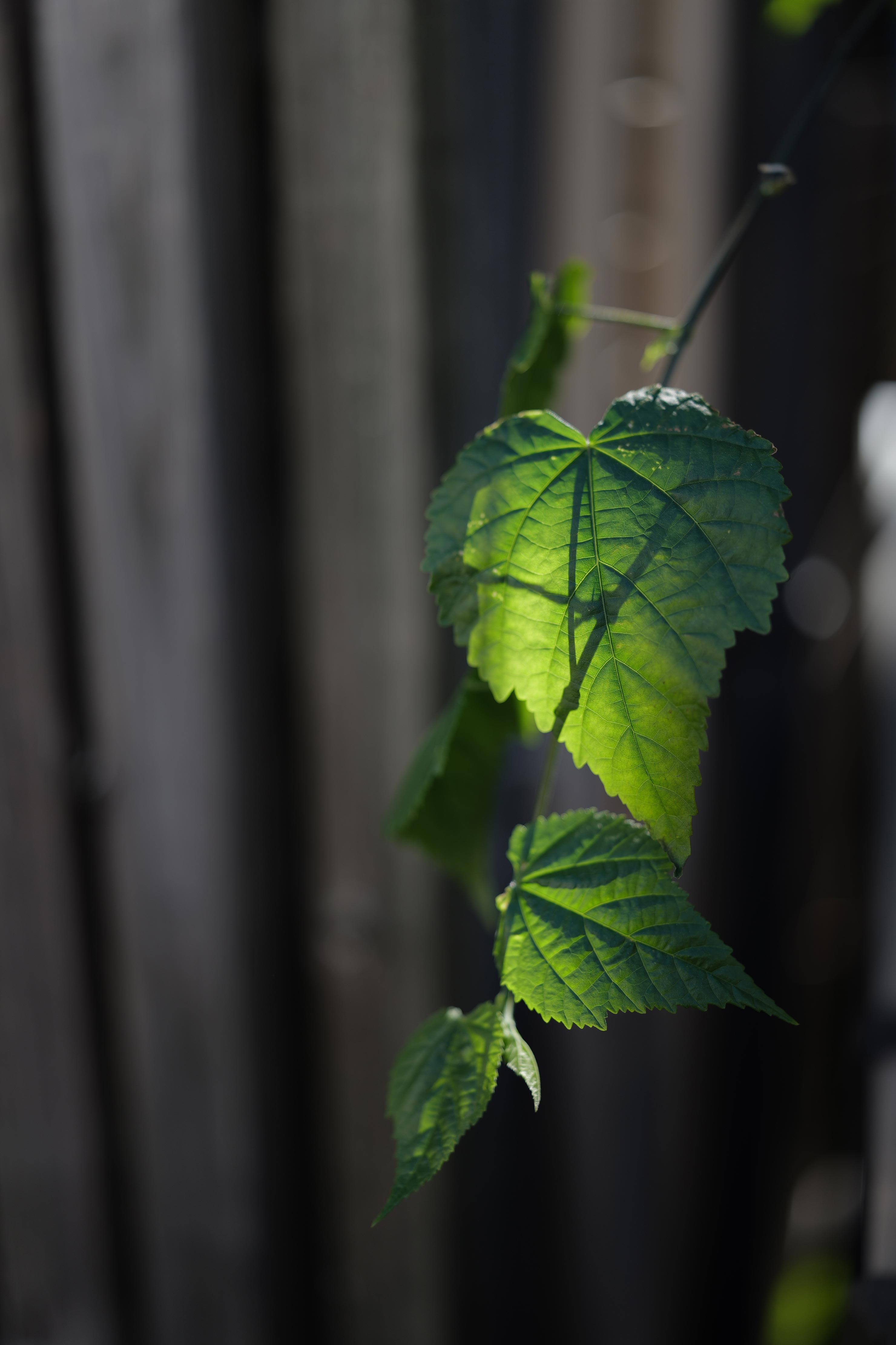 路地の間から透過光に輝く葉を見つけました。測光モードをスポットに切り替え、さらに1/3段アンダーに設定して光を強調。こうしたコントロールもLeica SL3-Sはスムーズに行えます。