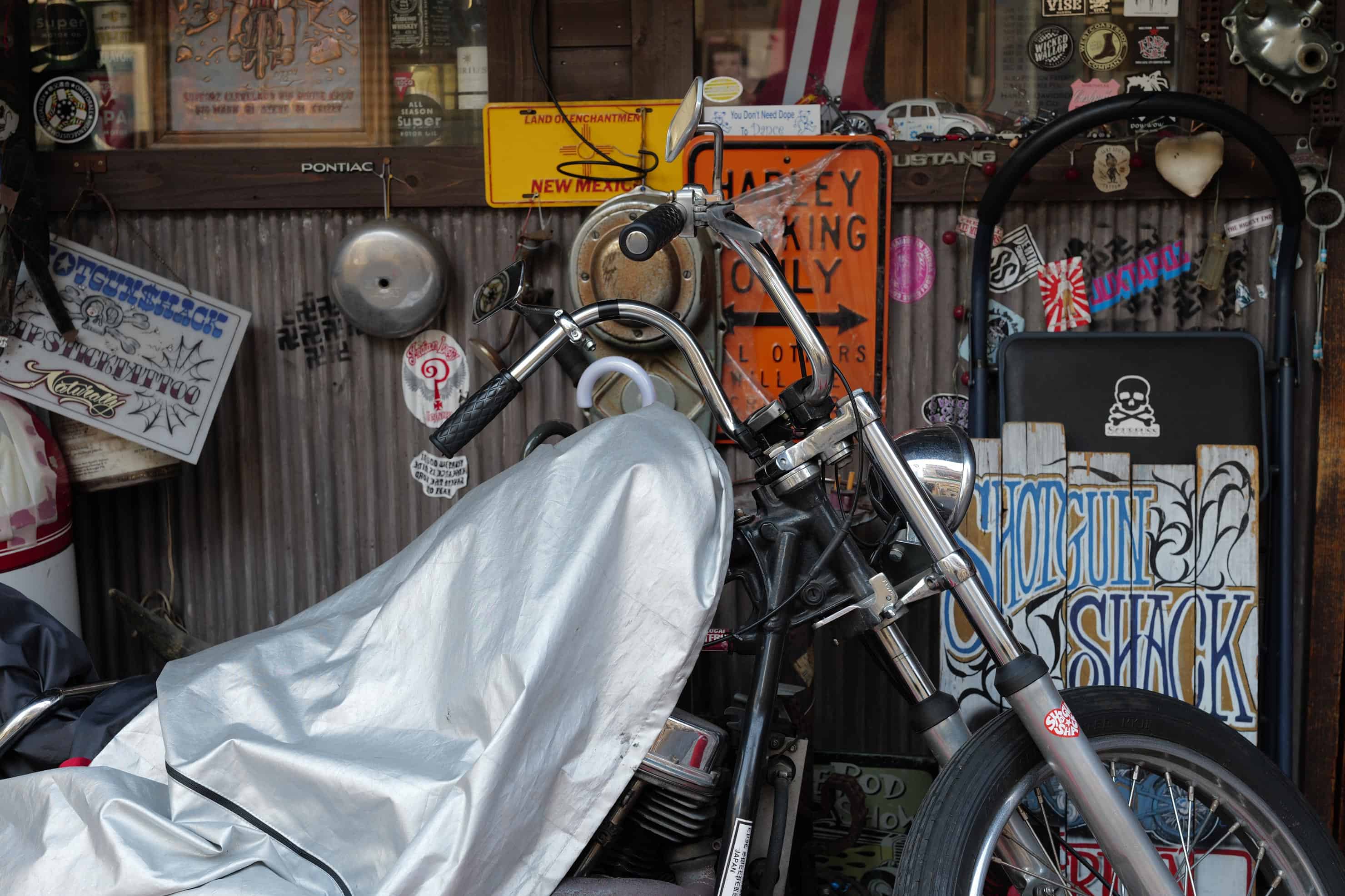 2400万画素とはいえ、高精細で豊かな階調の画質が得られます。バイクの金属やシートカバーの質感再現も申し分ありません。