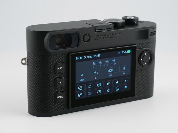 光学式レンジファインダーユニットをEVF表示デバイスに換装することでボディが軽量化されており、M型ライカ各種を使ってきた方々なら『おお、軽い!』と驚かれると思います。その軽さは重量のある大口径標準レンズと組み合わせた場合にもトータルで減量されるので、持ち歩きの負荷が軽減するのがメリットです。