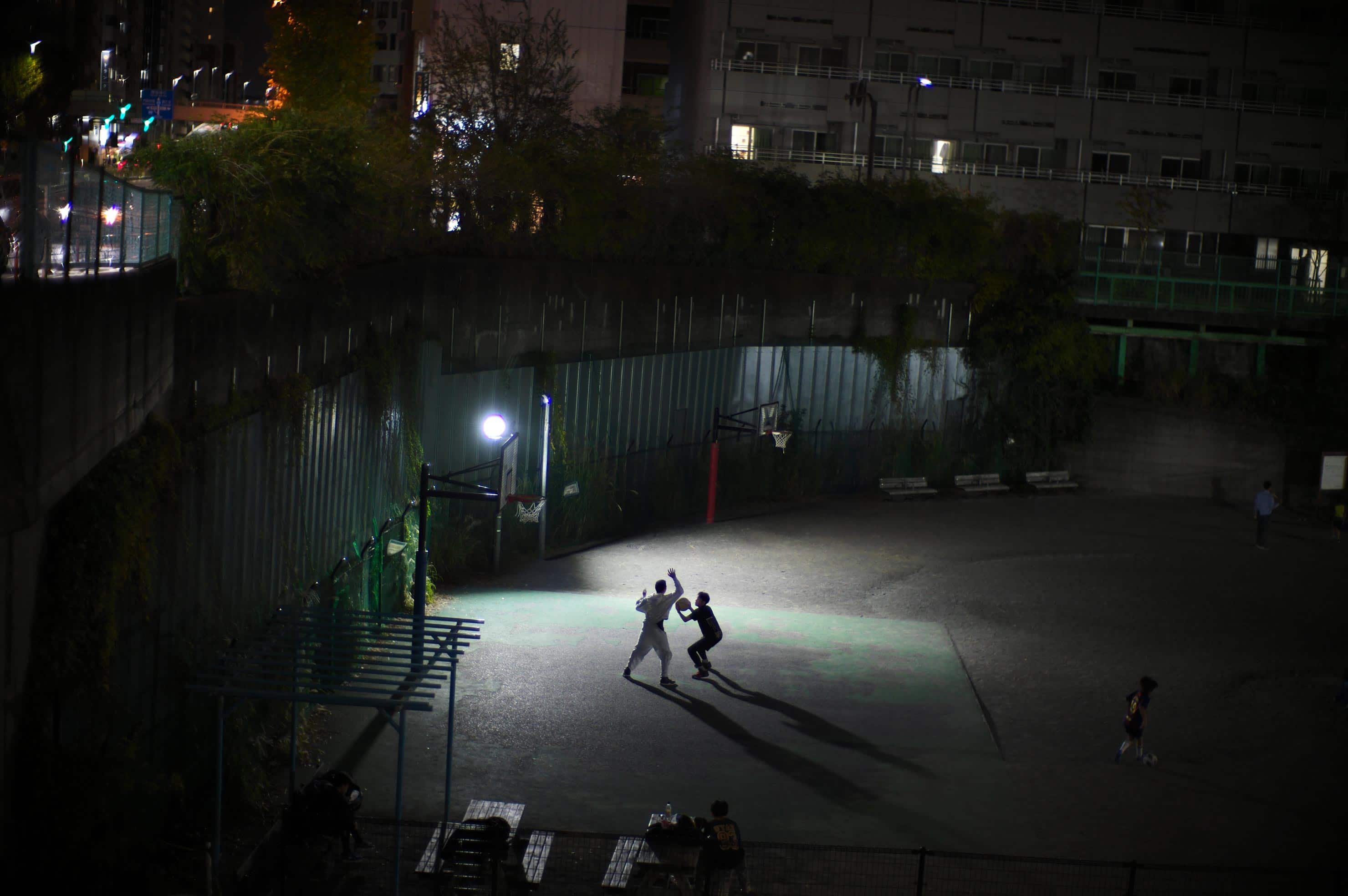 絞り開放F1で夜の公園をスナップ。