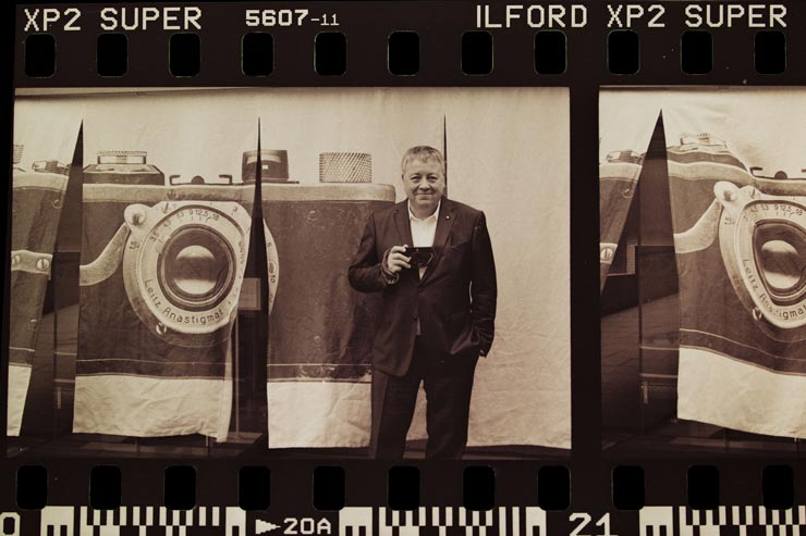 被写体はライカカメラ社の副社長で写真・デザイン担当をされているステファン・ダニエル氏。彼が『ライカR用のアポ・マクロ・エルマリートR 100mm F2.8に等倍撮影を可能とする純正のアタッチメントレンズを装着して、昔のポジの複写をこのカメラでしているけれど最高に楽しい!』と、Leica M EV1のマニアックな使い道を教えてくれました。