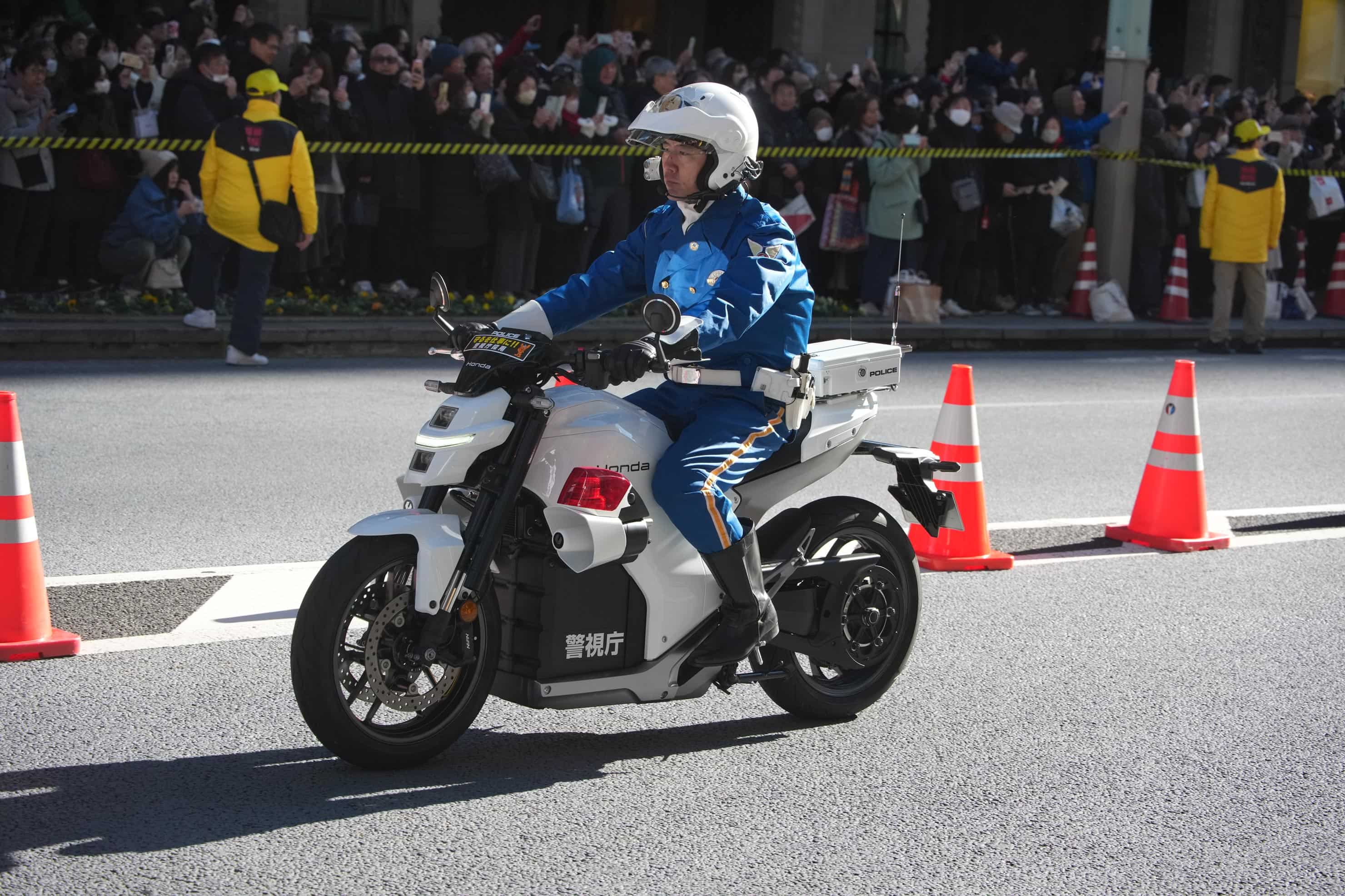鳥や電車など、このレンズが動体撮影にも十分な性能を有していることを確信し、駅伝復路の撮影に持ち出してみました。先頭集団よりも先にやってきた規制予告車の一団にいたのは、警視庁が現在テスト中の電動白バイ。モーター音すらしないその姿に近未来を見た気がしました。