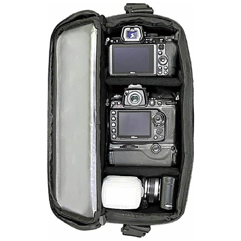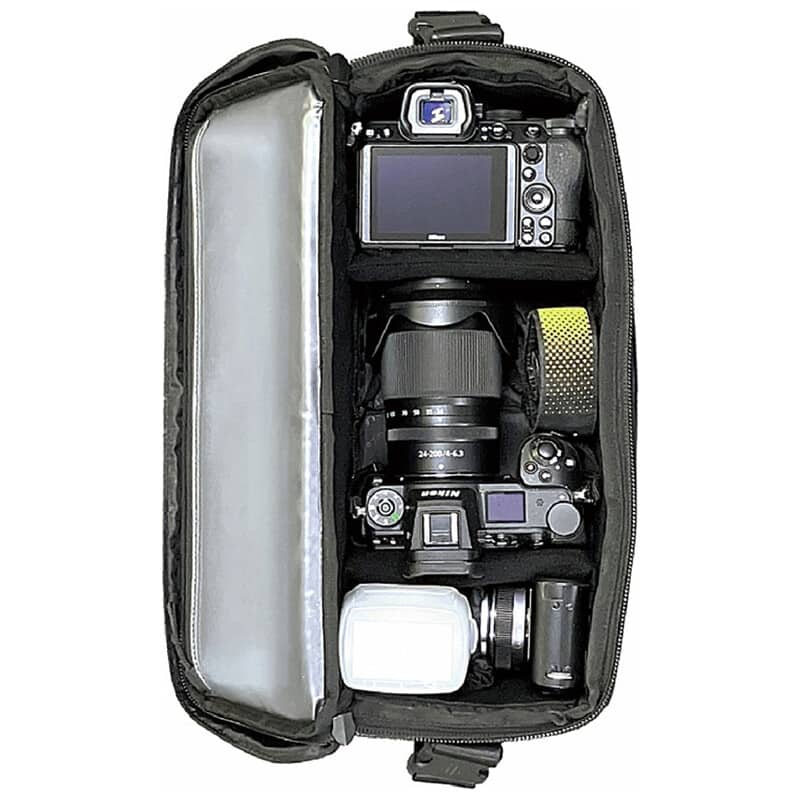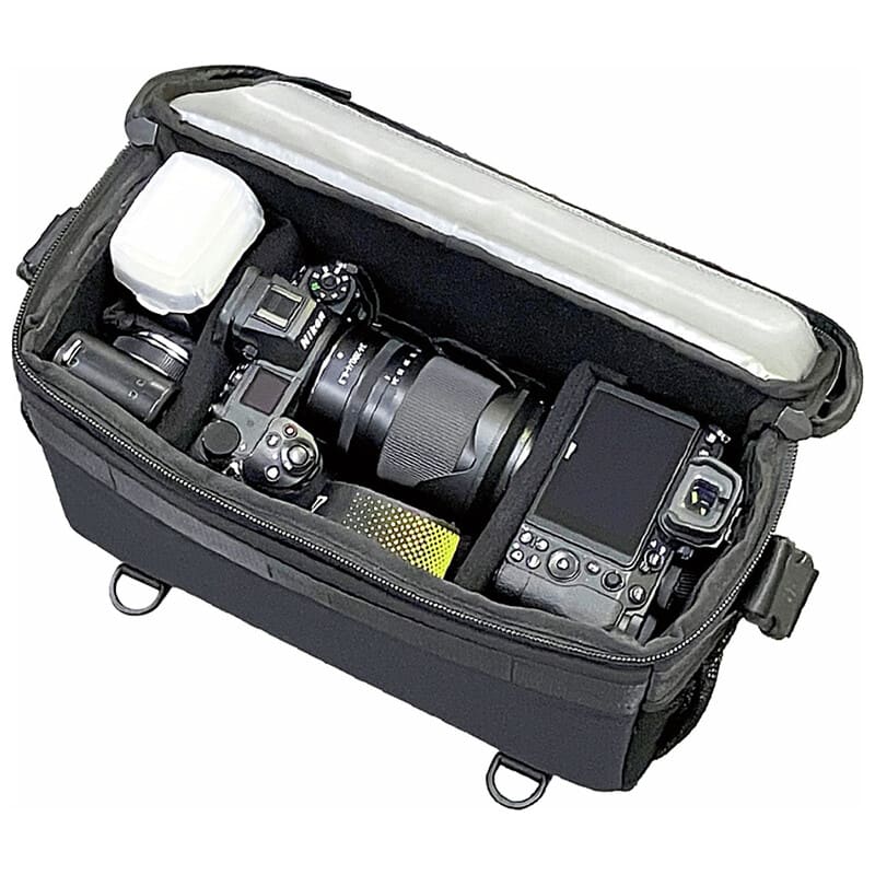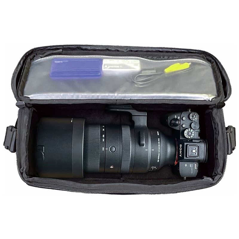 スクエア型カメラショルダーバッグ カメラバッグ特有の昔ながらのスクエア型のメイン収納は、一眼レフやミラーレス、交換レンズを効率的に収納可能