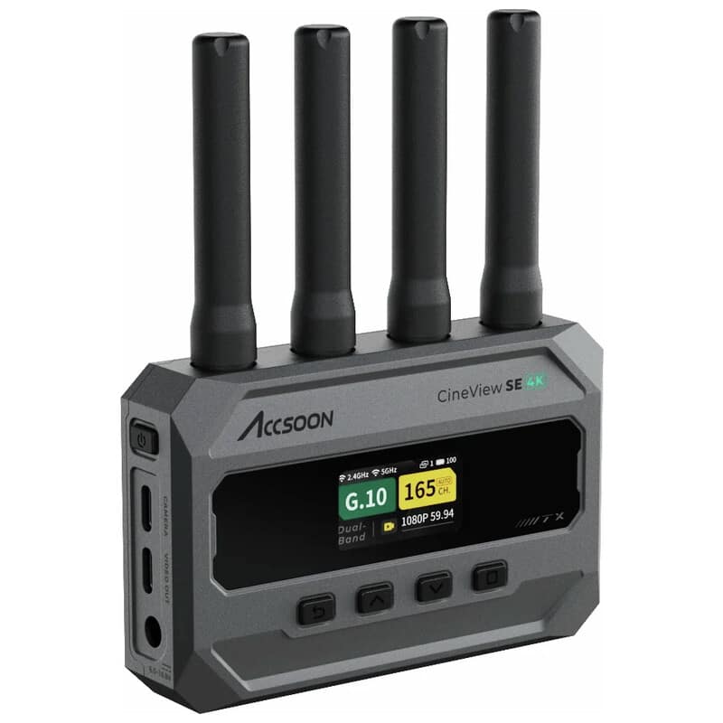 AccsoonのCineView SEシリーズに新たに加わった4K対応ワイヤレス映像伝送システム UHD 4K30伝送、H.265エンコード、RTMS 4.0プロトコル対応デュアルバンド無線技術を搭載し、プロフェッショナルな映像制作現場に求められる高画質・低遅延・高安定性を実現
