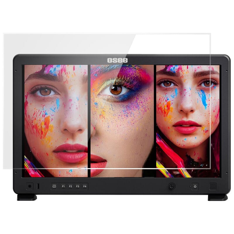 オーシー製プロダクションモニターの液晶を保護するカバー 耐久性に優れたアクリル樹脂製で、持ち運び時の揺れによる衝撃、埃や汚れ、傷からモニターを保護