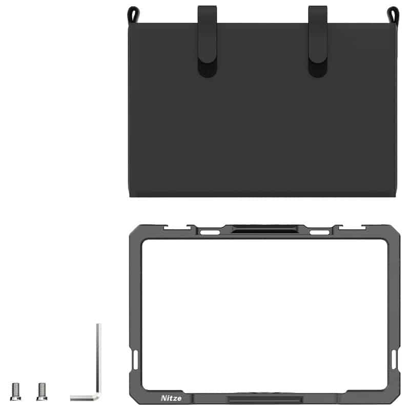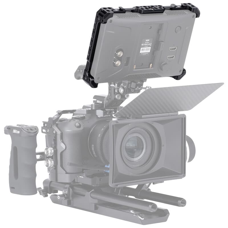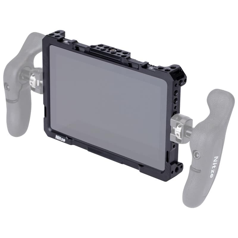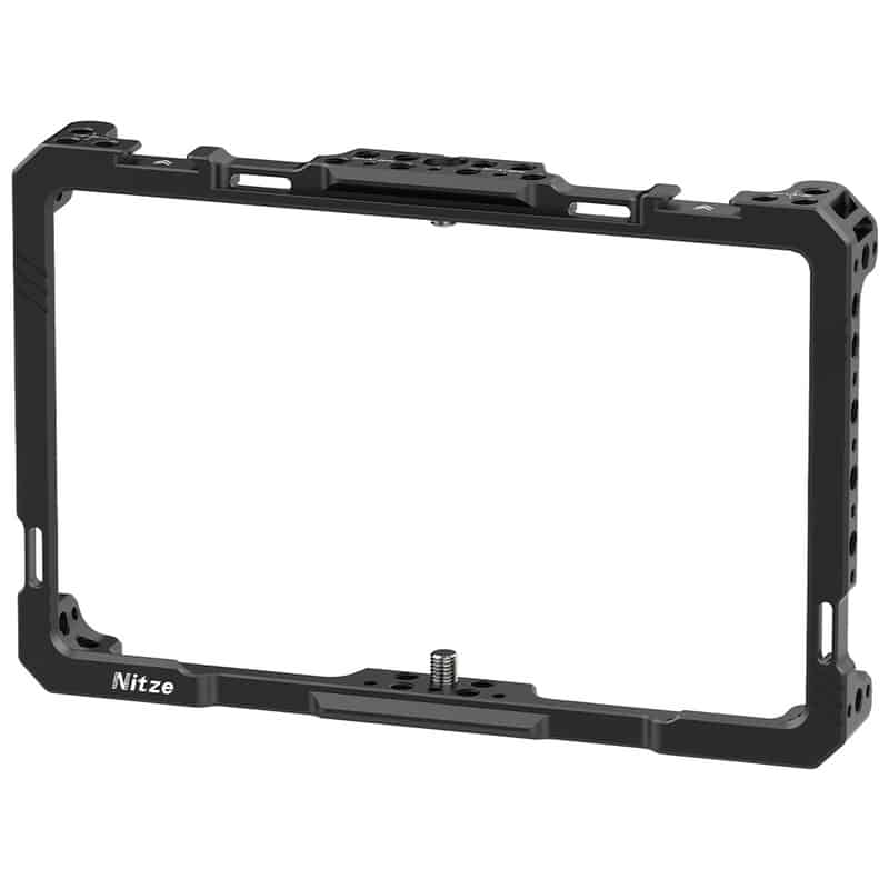 オーシー「G7プロ」の機能を最大限に引き出し、撮影現場での運用をサポートするために設計された専用ケージ 本体は丈夫なアルミニウム合金製で、上下の2本の1/4インチネジでモニターをしっかりと固定し、優れた拡張性を実現