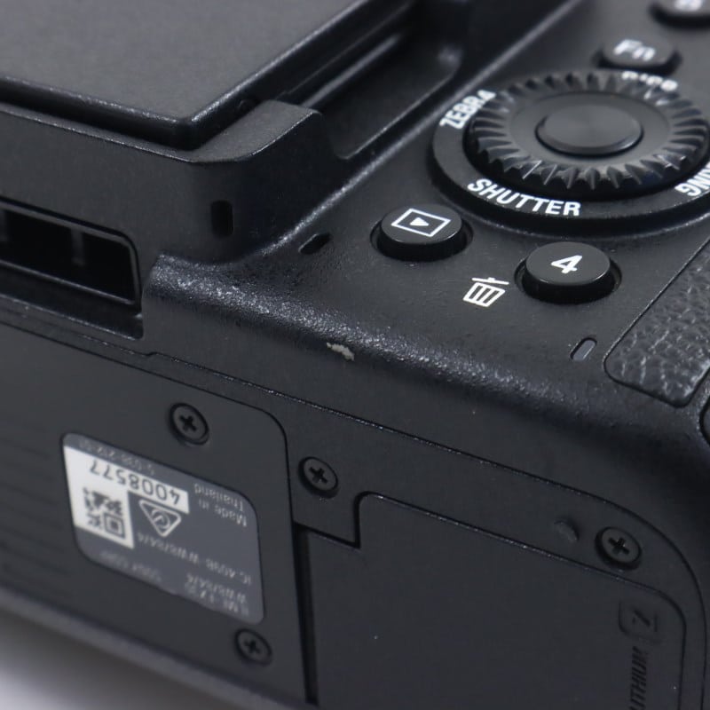 特記事項マウント部キズ。ボディ上面にアクセサリー取付跡。底面塗装はがれ。付属バッテリー、ボディキャップ、シューキャップにキズ。