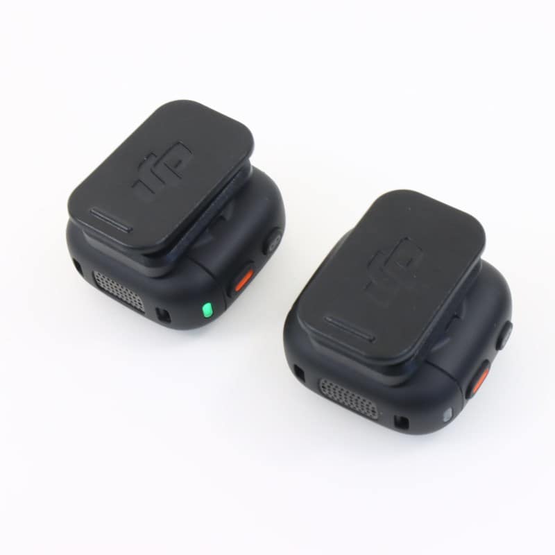 コンパクトで軽量、目立たないデザイン トランスミッター2台、レシーバー1台、充電ケース(ケース使用で最大28時間の駆動時間)が付属