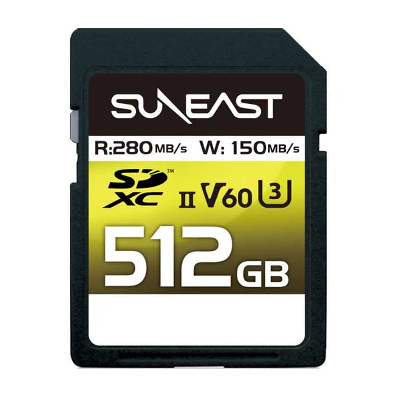 フラッグシップモデルとなるビデオカメラやミラーレス⼀眼レフカメラのために設計された【SUNEASTULTIMATE PRO SD UHS-II カード】は、最⼤読込速度 280MB/秒、最⼤書込速度 150MB/秒を実現し、PC等への⾼速転送や⾼解像度の⾼速連写を可能に。UHS-I 対応機種でも最⼤読込速度 95MB/秒、最⼤書込速度90MB/秒で⾼速転送が可能となり、使⽤する機器を選びません。また UHS スピードクラス 3(U3)やビデオスピードクラス 60(V60)に対応し、4K 動画撮影に最適です。