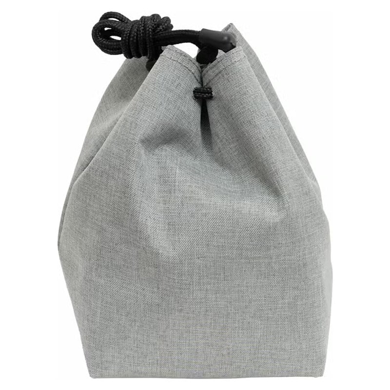 開口部が大きく開きカメラを出し入れしやすい巾着型のカメラポーチ 裏地はやわらかいフランネル素材を使用、小型のミラーレスカメラに最適な大きさ