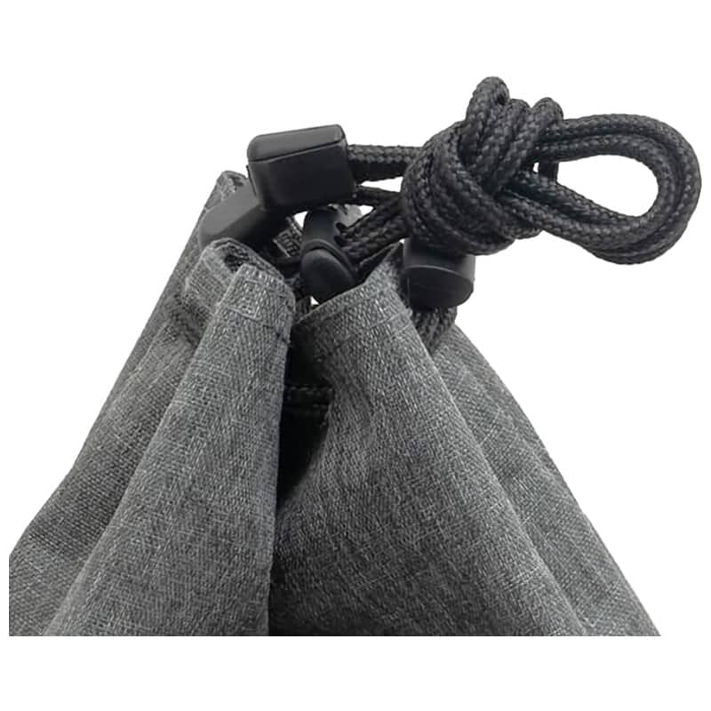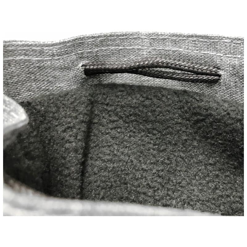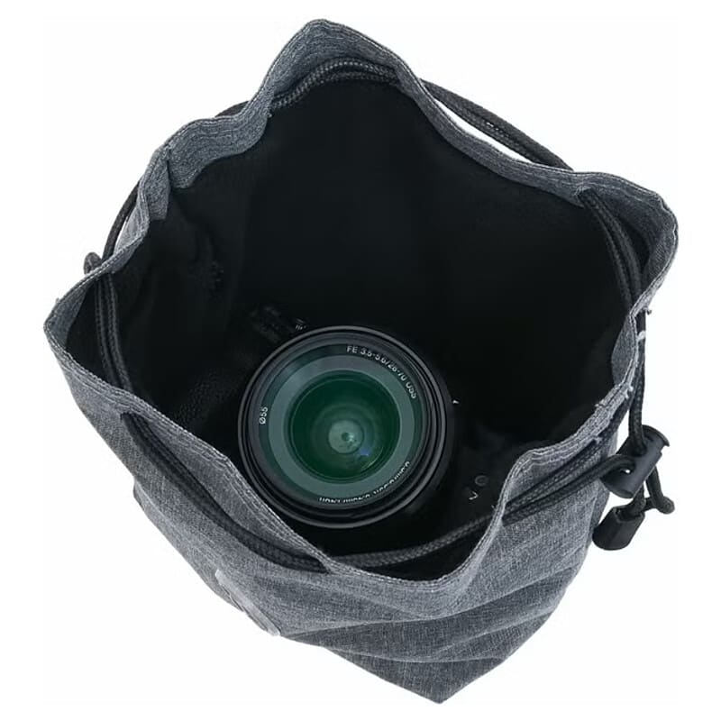 開口部が大きく開きカメラを出し入れしやすい巾着型のカメラポーチ 裏地はやわらかいフランネル素材を使用、小型のミラーレスカメラに最適な大きさ