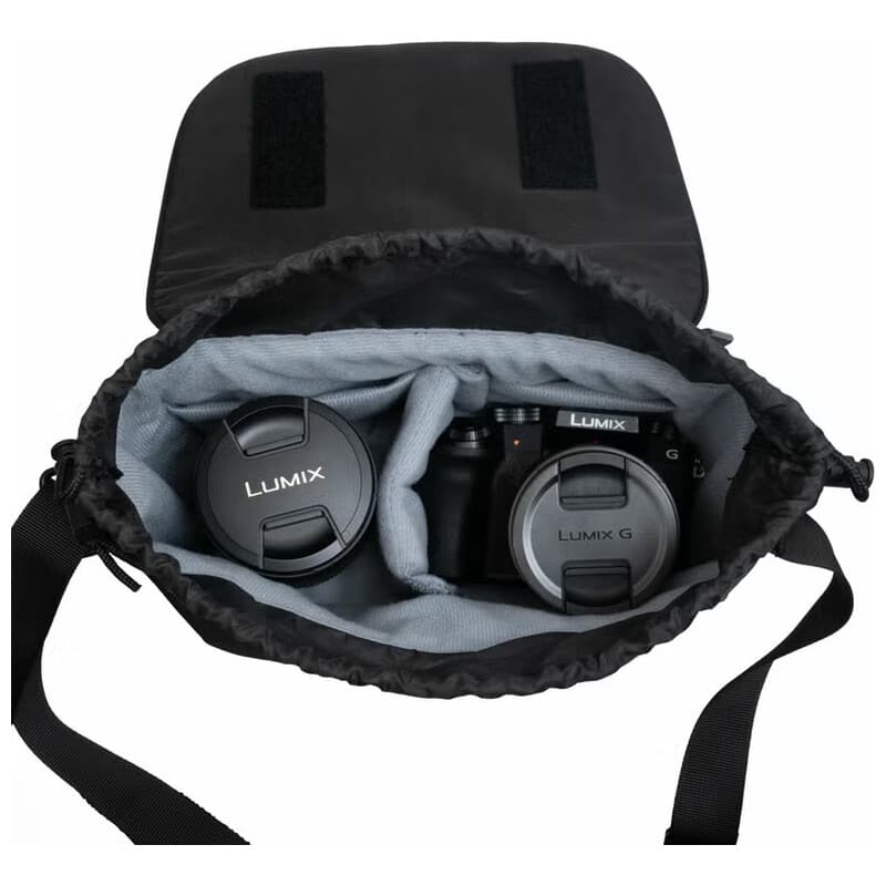 収納口が巾着仕様で使いやすい、小型ミラーレスカメラの収納に最適なカメラバッグ ほどよいクッション性でカメラをしっかり保護