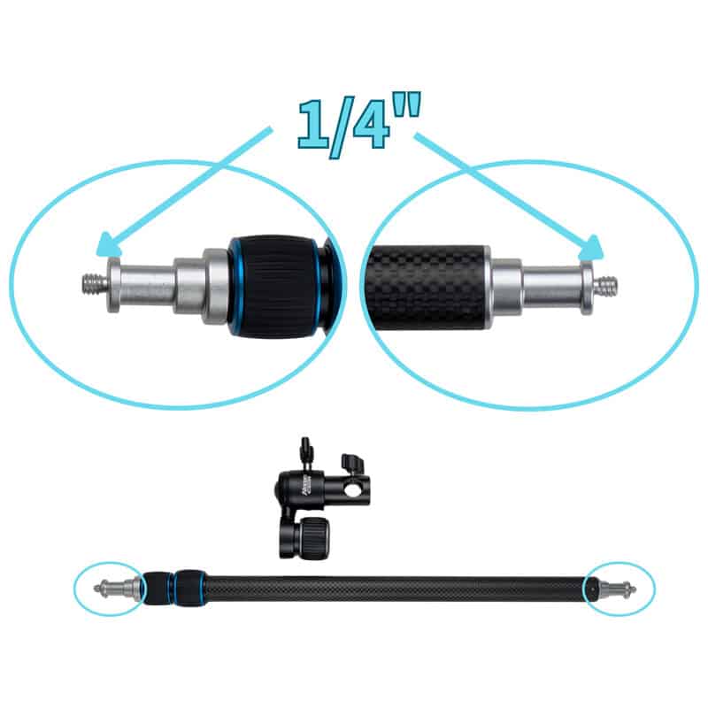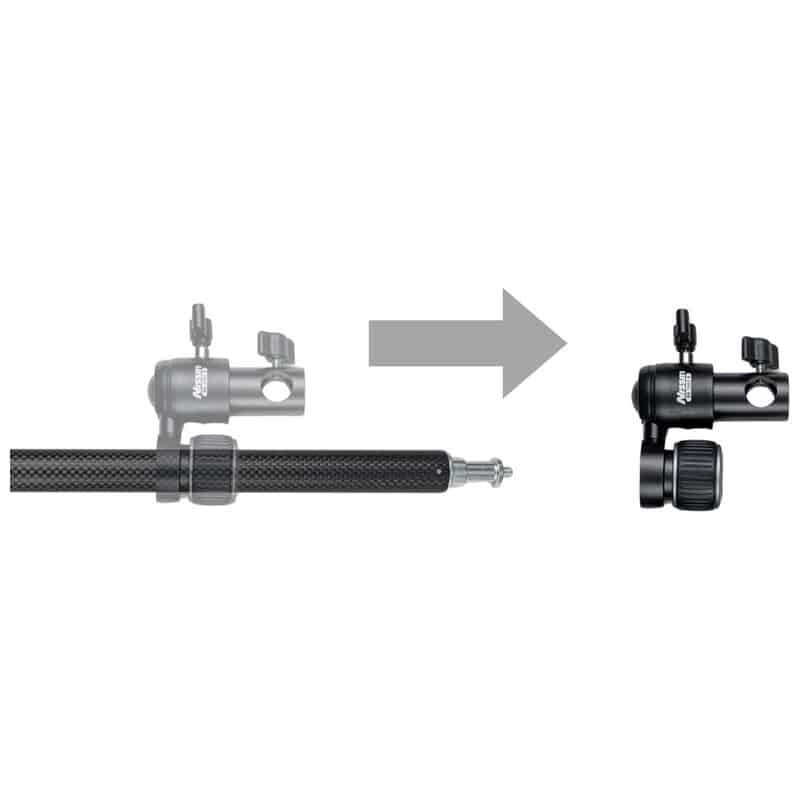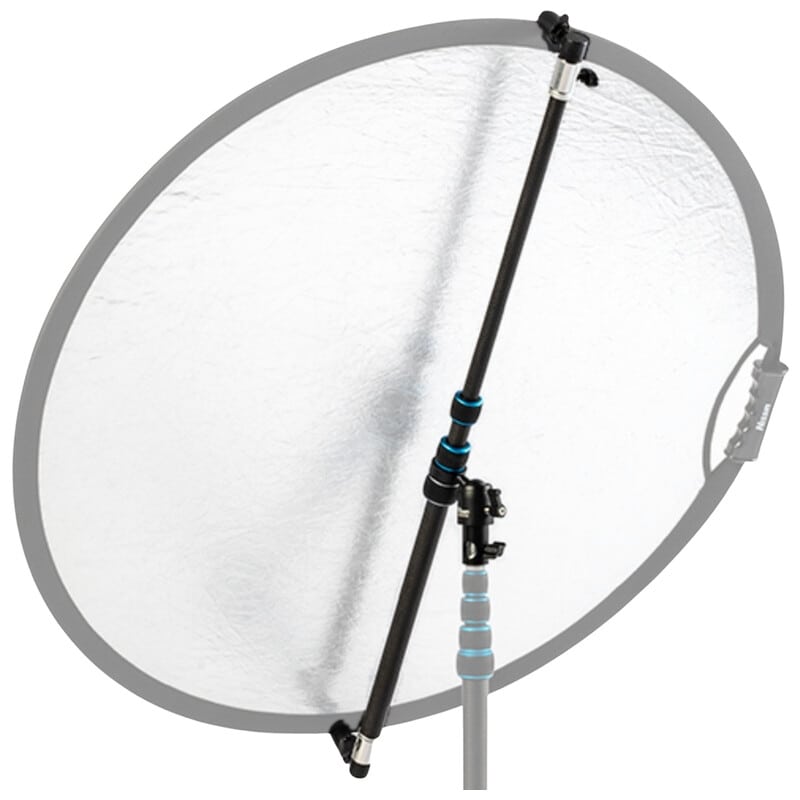 レフクリップ、ダボ受けが取り外しできるカーボン製軽量レフ板ホルダー レフクリップを外せば照明機器や小型カメラ、各種アクセサリーも装着可能