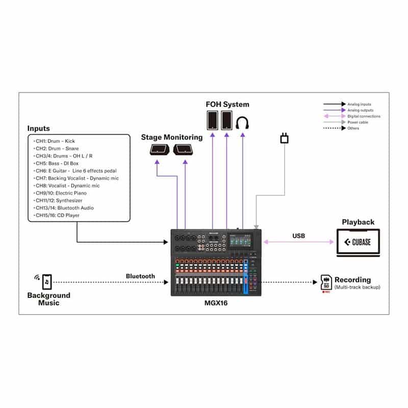 インプットチャンネル:8 mono + 4 stereo + 1 Sound Pad + 2 FX