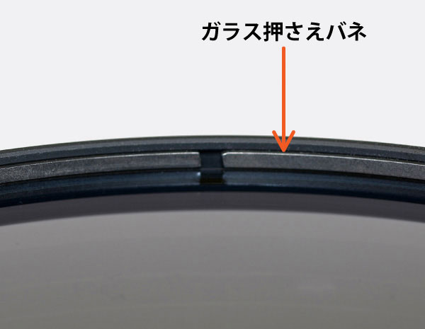 フィルターガラス押さえバネに耐腐食処理を施しサビを防止。バネの部分にまで水が入り込んでも安心です。