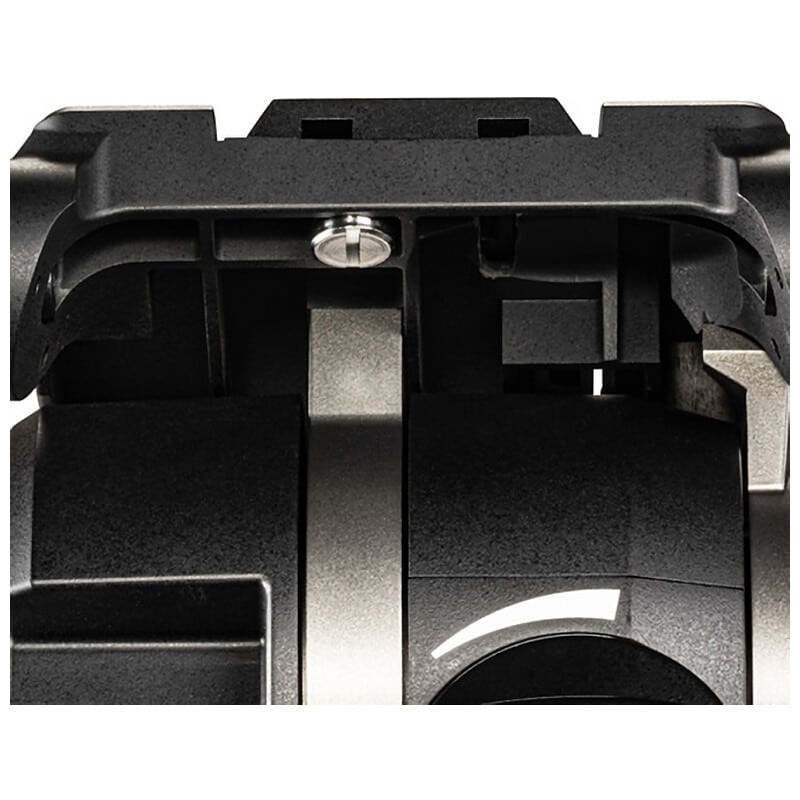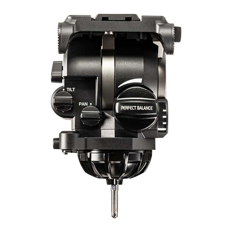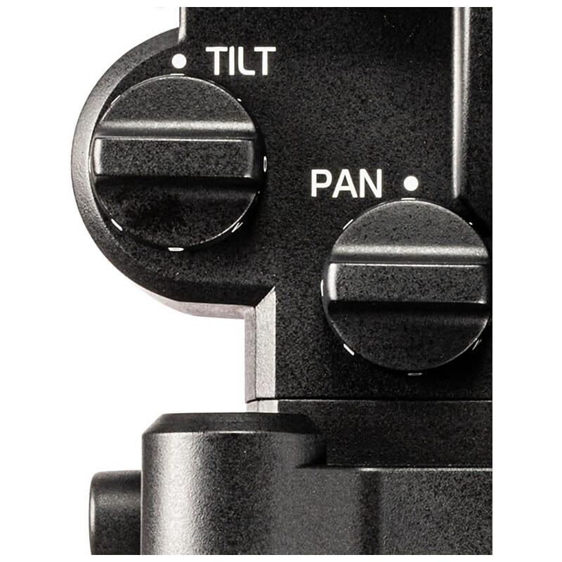 モニターやライトをアクセサリーアームなどで取り付けられるよう、ヘッド前面に1/4、3/8インチのアクセサリーポートがあります。ベース部分に設けてあるのでヘッドの搭載重量や重心高、前後バランスに影響を与えません。また、ネジの締まる方向に荷重が掛かるので不意にアームが外れることはありません。