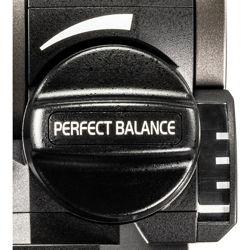 通常は、カウンターバランス調整ツマミを時計回りに回していくと、徐々にスプリングの力が強くなり、ツマミを回すのに必要な力が増えていきます。その回す力を効率的に低減させる”スムースバランスシステム”により、常に一定の少ない力で調整ツマミを回し、スピーディーに快適にバランス調整を行うことができます。