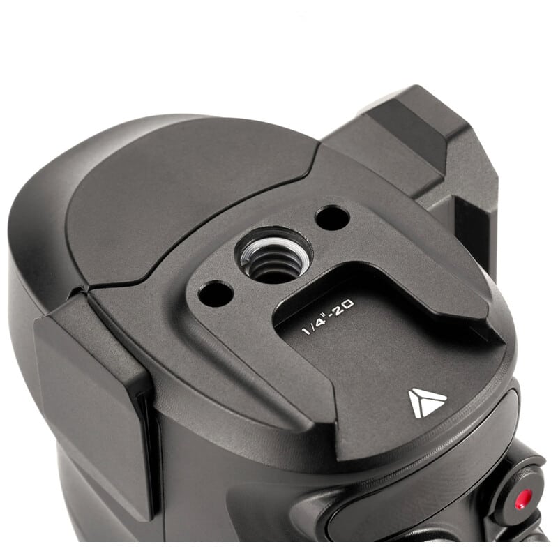 ハンドルには1/4″-20ネジ穴があり、ショルダーリグのセットアップに直角ロゼットアダプターを取り付けるのに最適です。