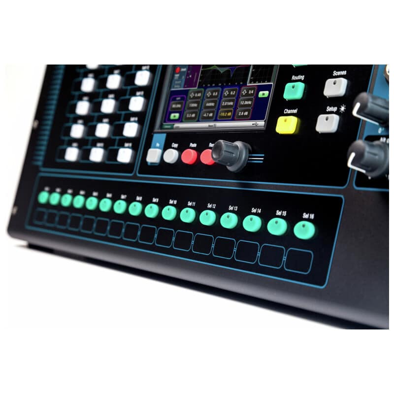優れた機能性と革新的なデザインを兼ね備え、快適なミキシングを提供 上位機種のパフォーマンスをコンパクトサイズに凝縮したポータブルサイズ 22in/ 12outデジタルミキサー