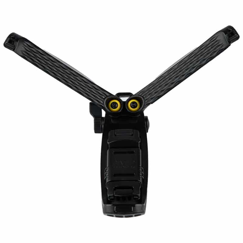 完全に展開すると、撮影用の卓上三脚として使用でき、ビデオ鑑賞用の携帯電話ホルダーとしても機能します。底部には滑り止めが付いており、安定性を確保。脚を曲げることで、波状テクスチャーを備えた調整可能なビデオブログ撮影用ハンドルとしても使用できます。