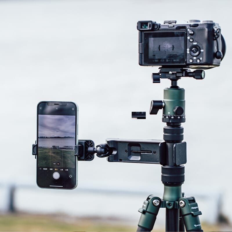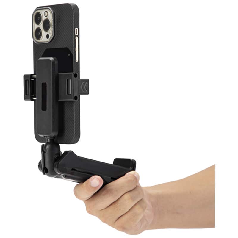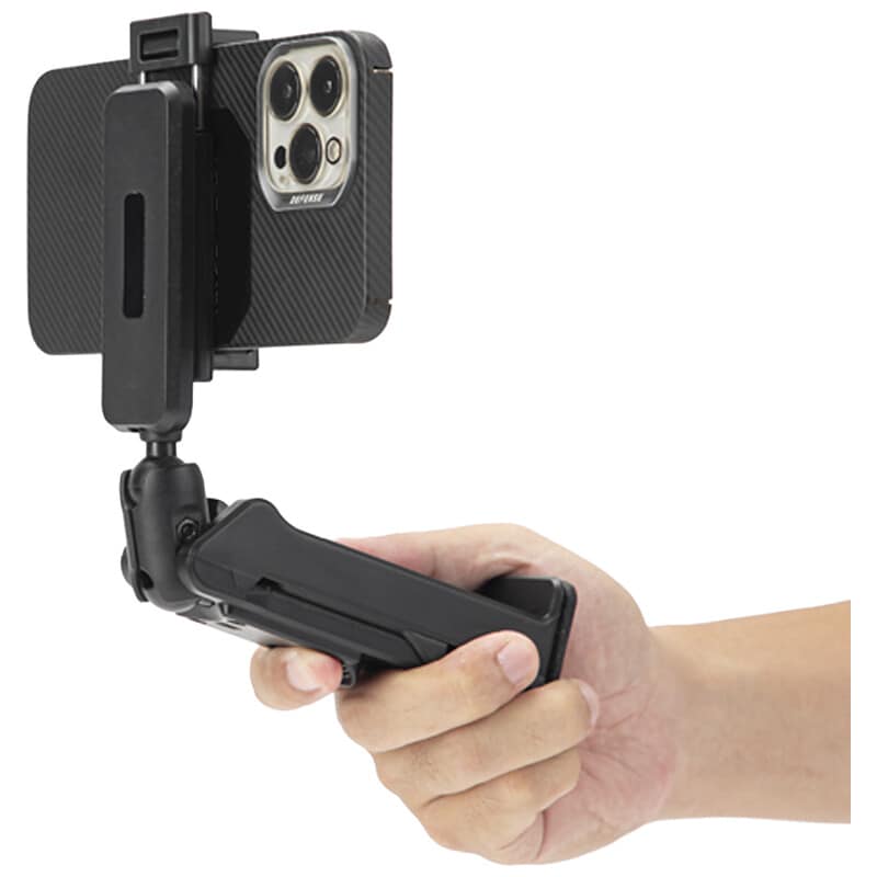 軽量(約159g)で様々なスマートフォンに対応したスマートフォンホルダー 3Way的な使い回し(例:卓上スタンド/簡易三脚ポジション/アクセサリアーム的活用)を意識したスタイルで携帯向け